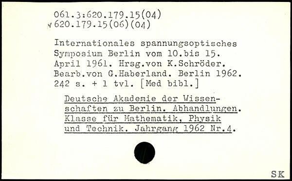 Internationales spannungsoptisches Symposium Berlin vom 10.bis 15. April 1961. Hrsg.von X.Schröder. Bearb.von G.Haberland.
