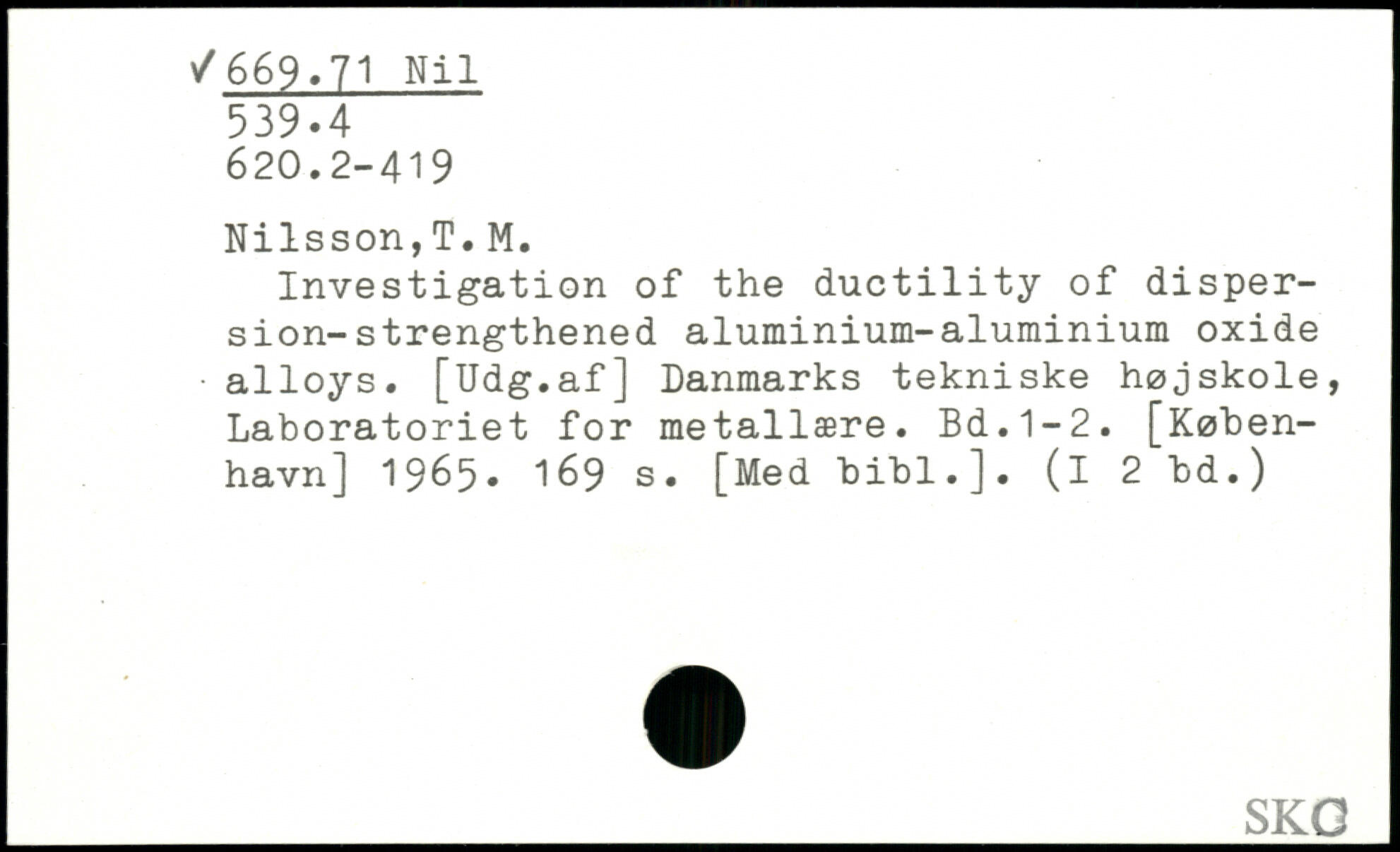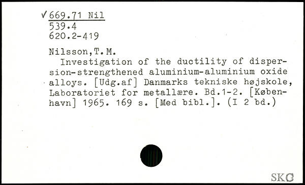Investigation of the ductility of dispersion-strengthened aluminium-aluminium oxide alloys. [Udg.af] Danmarks tekniske højskole, Laboratoriet for metallære.