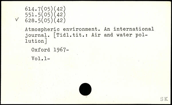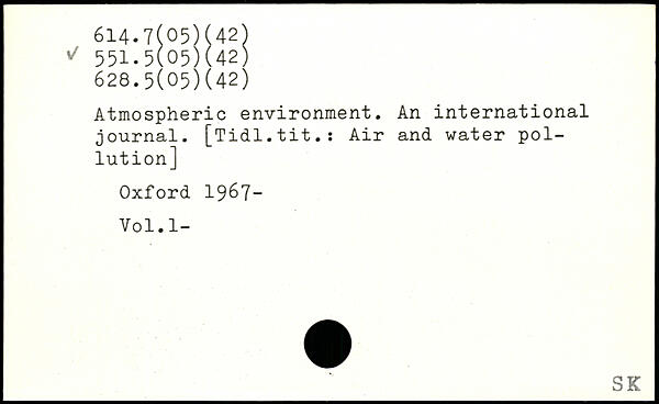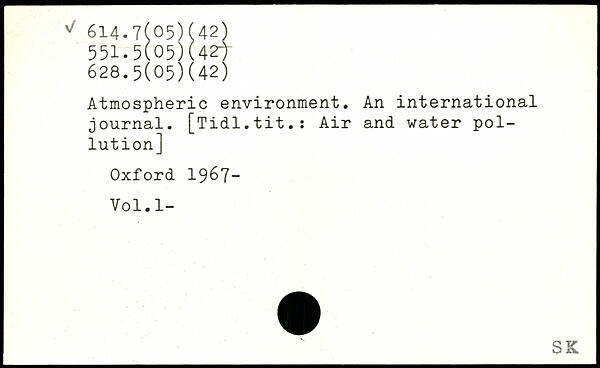 Atmospheric environment. An international journal. [Tidl.tit.: Air and water pollution]