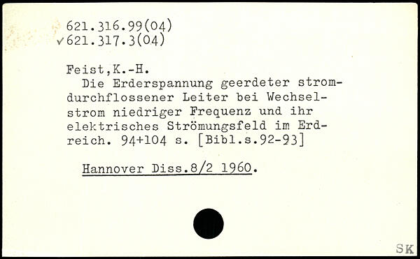 Die Erderspannung geerdeter stromdurchflossener Leiter bei Wechselstrom niedriger Frequenz und ihr elektrisches Strömungsfeld im Erdreich.