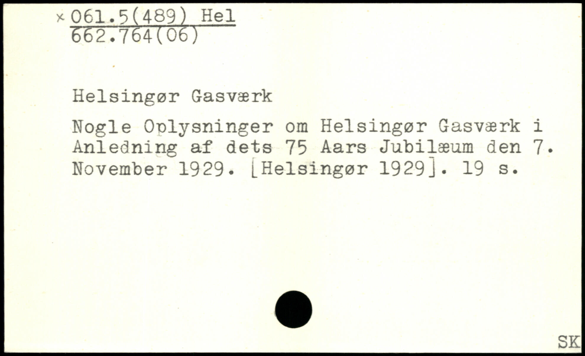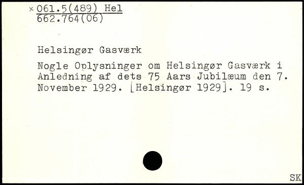 Helsingør Gasværk Nogle Oplysninger om Helsingør Gasværk i Anledning af dets 75 Aars Jubilæum den 7. November 1929. (.Helsingør 1929j.