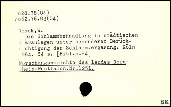 Die Schlammbehandlung in städtischen Kläranlagen unter besonderer Berück-c, i chtigung der Schlammvergasung.