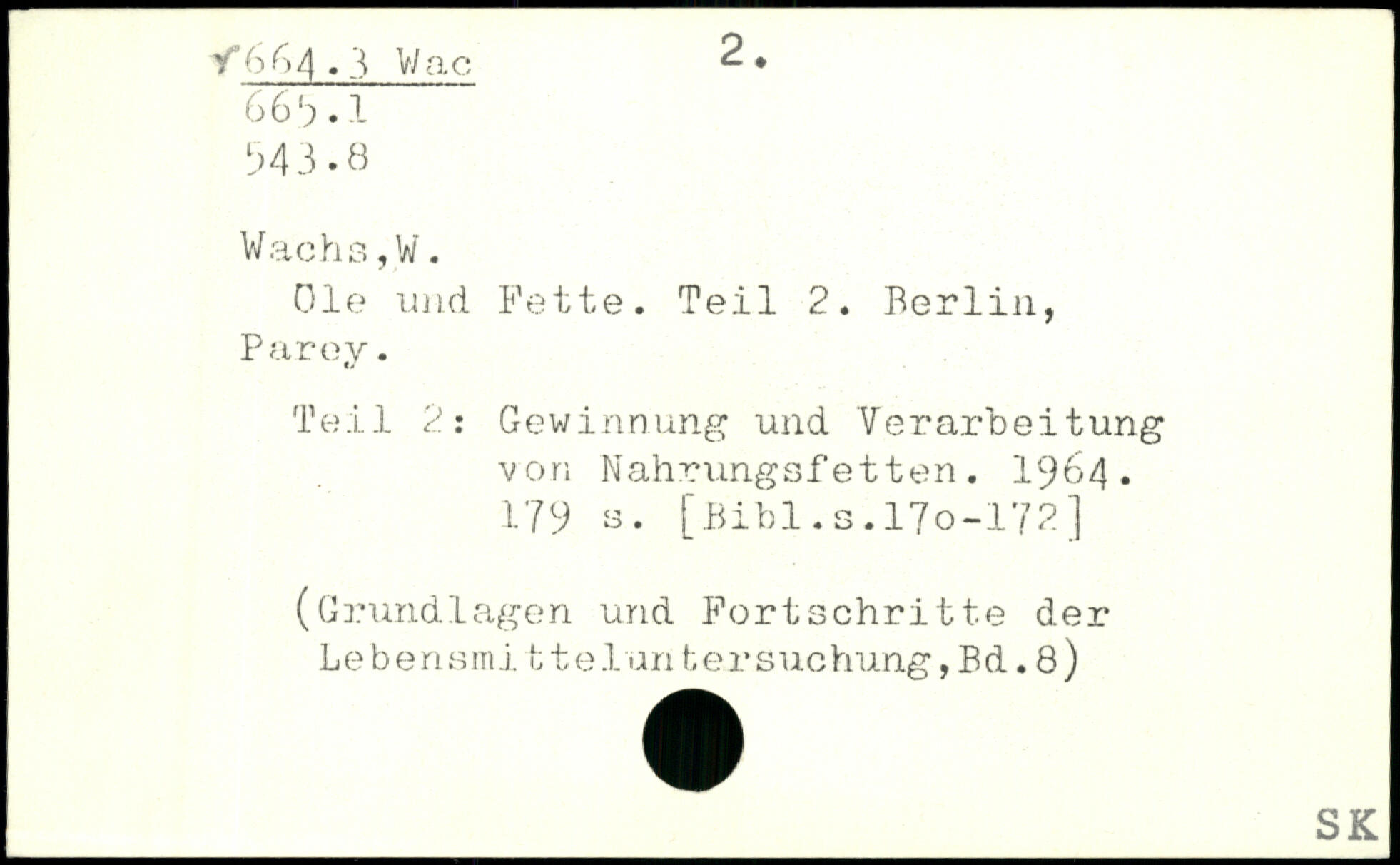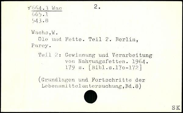Oie und Fette. Teil 2. Berlin, Paroy. Teil 2: Gewinnung und Verarbeitung vor. Nahrungsfetten. 1964. 179 3.