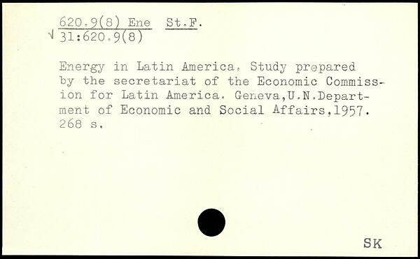 Energy in Latin America, Study prepared "by the secretariat of the Economic Commission for Latin America. Geneva,U.N,Department of Economic and Social Affairs,1957.