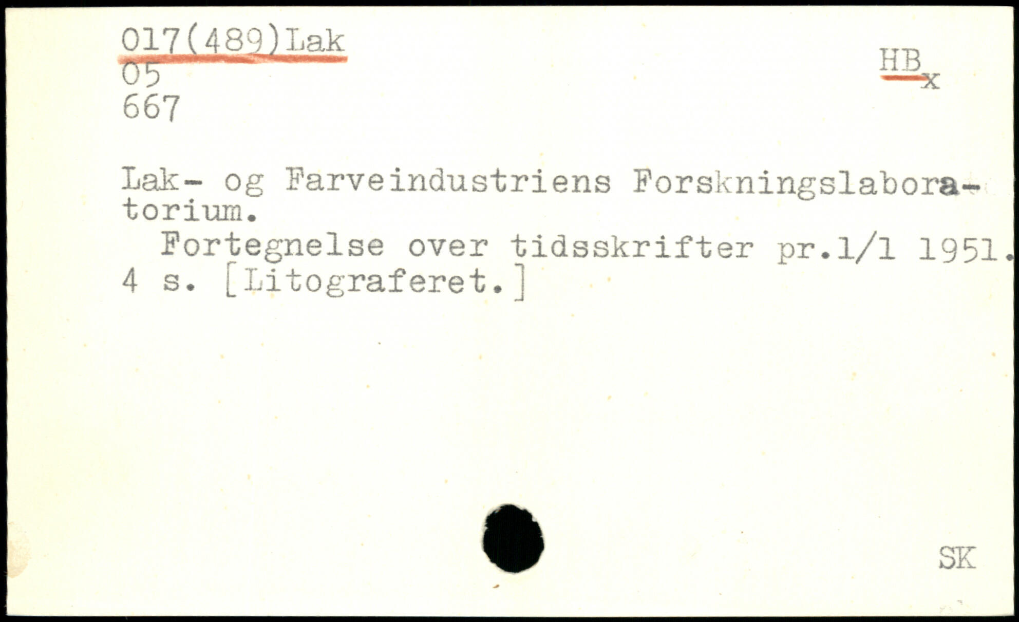 Lak- og Farveindustriens Forskningslaboratorium. Fortegnelse over tidsskrifter pr.l/l 1951.