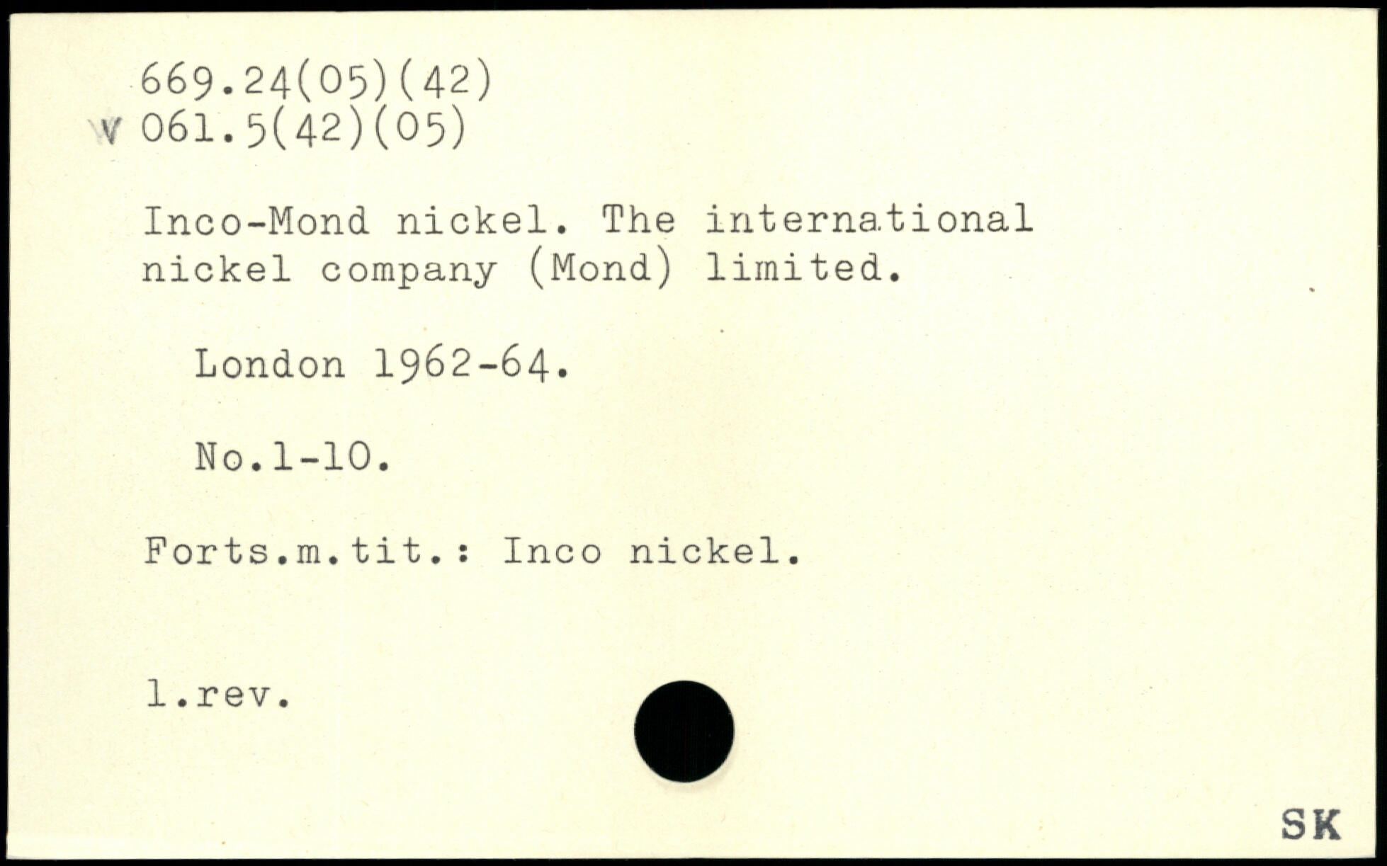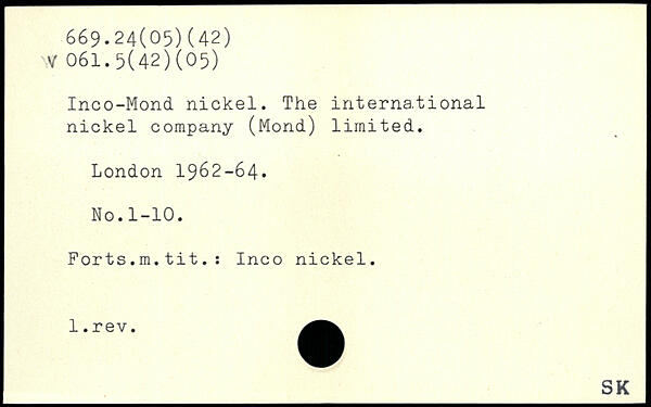 Inco-Mond nickel. The international nickel company (Mond) limited.