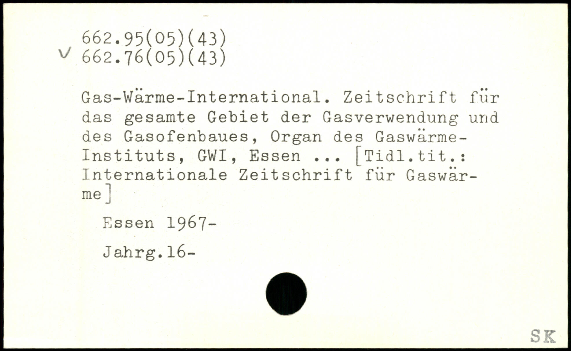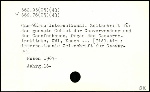 Gas-Wärme-International. Zeitschrift für das gesamte Gebiet der Gasverwendung und des Gasofenbaues, Organ des Gaswärme-Instituts, GWI, Essen ... [Tidl.tit.: Internationale Zeitschrift für Gaswärme ]
