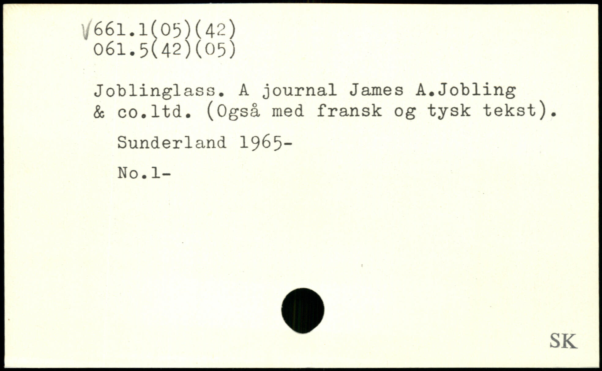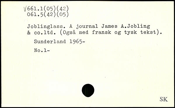 Joblinglass. A journal James A.Jobling & co.ltd. (Også med fransk og tysk tekst). Sunderland 1965- No.l-