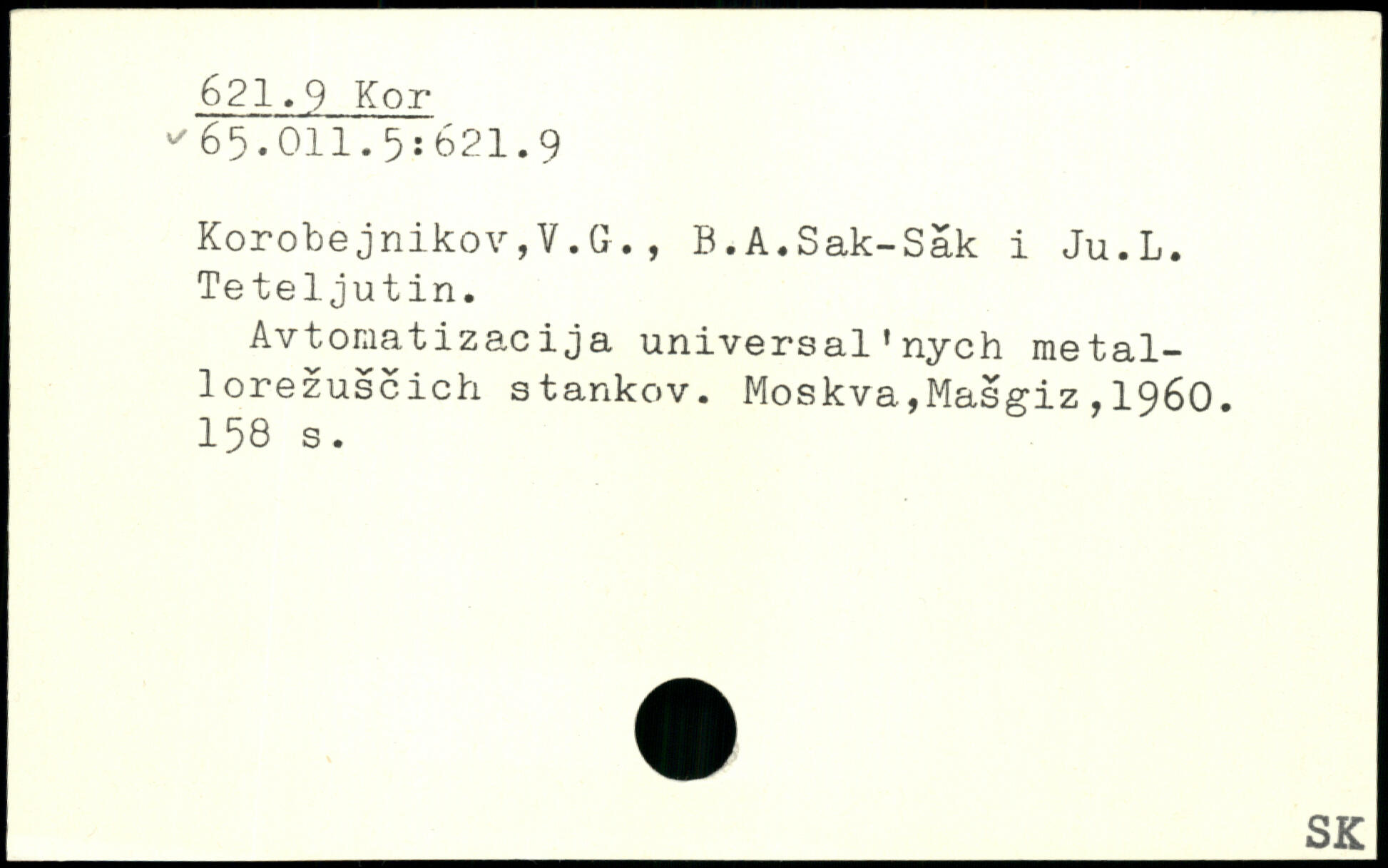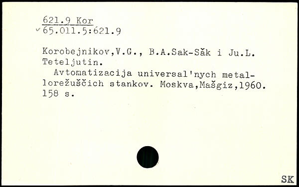 KorobejnikoVjV.G., B.A.Sak-Säk i Ju.L. Teteljutin. Avtomatizacija universal'nych metal-lorezuscich stankov.