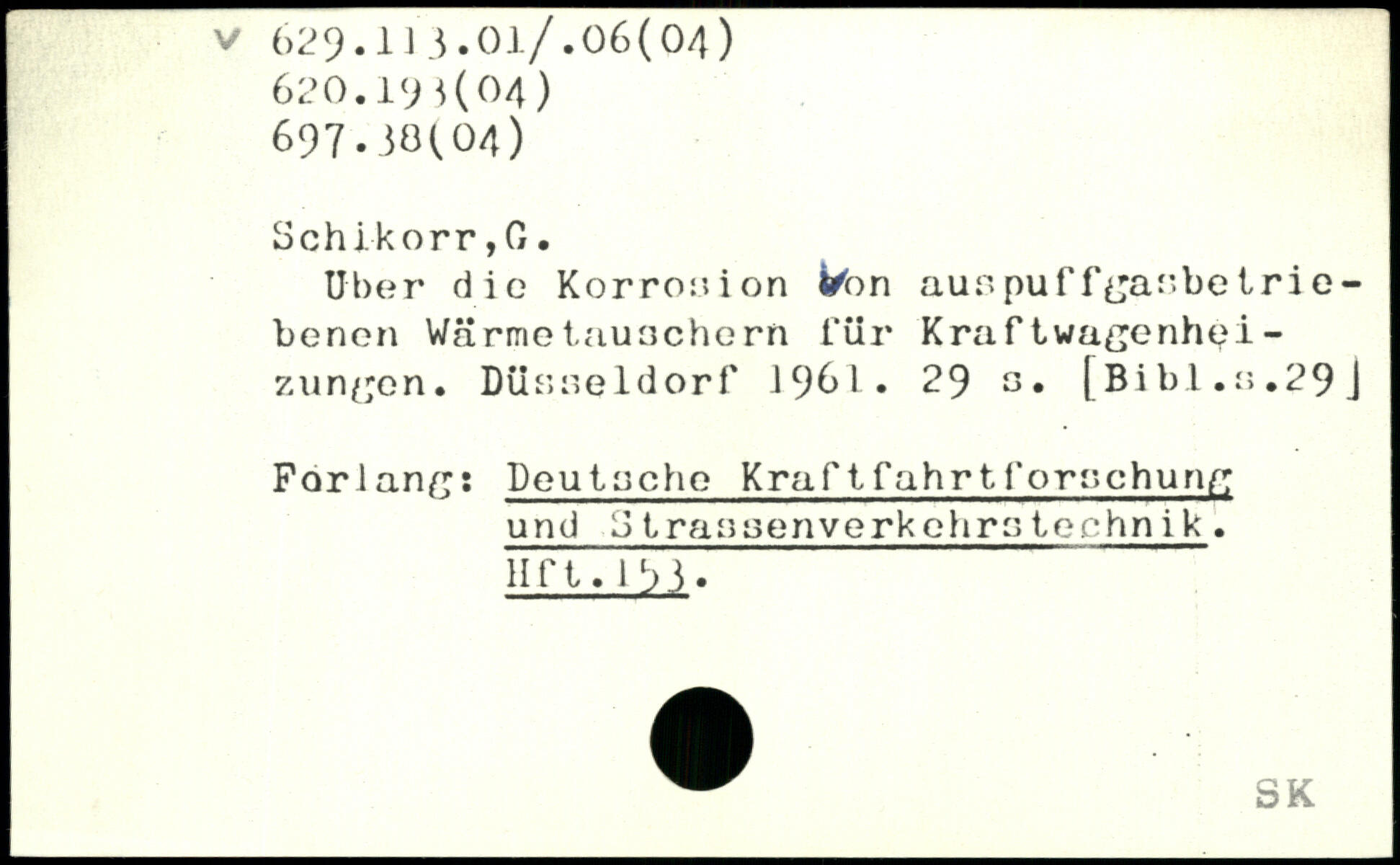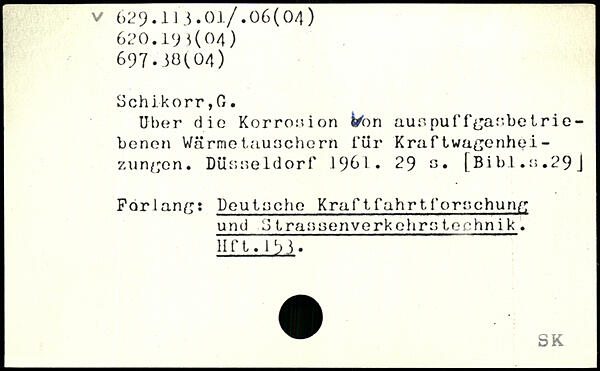 Uber die Korrosion l^on aunpuff^anbetrie-benen Wärmetauachern für Kraftwagenhei-zunyen. Dünneidorf 1961. 29 o.
