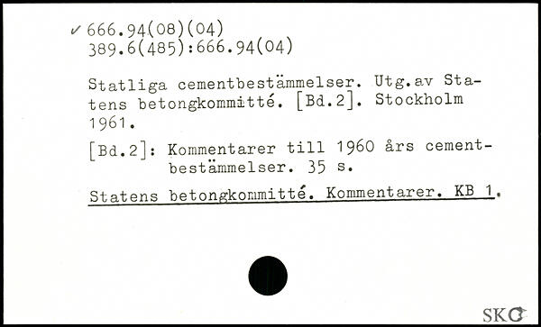 Statliga cementbestämmelser. Utg.av Statens betongkommitté. [