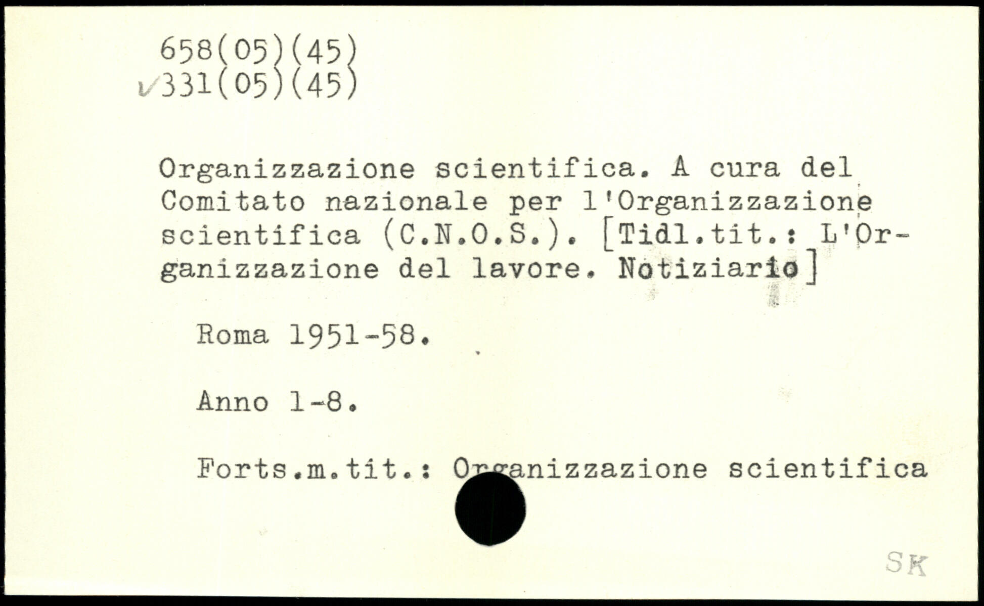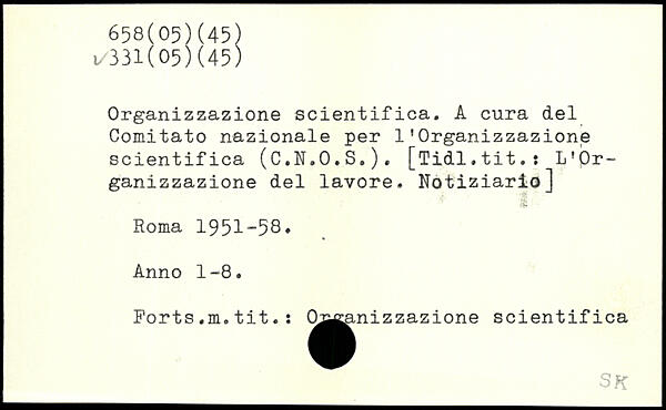 Organizzazione scientifica. A cura del Comitato nazionale per 1’Organizzazione scientifica (C.N.O.S.). [Tidl.tit.: L’Or-ganizzazione del lavore. Notiziarlo]