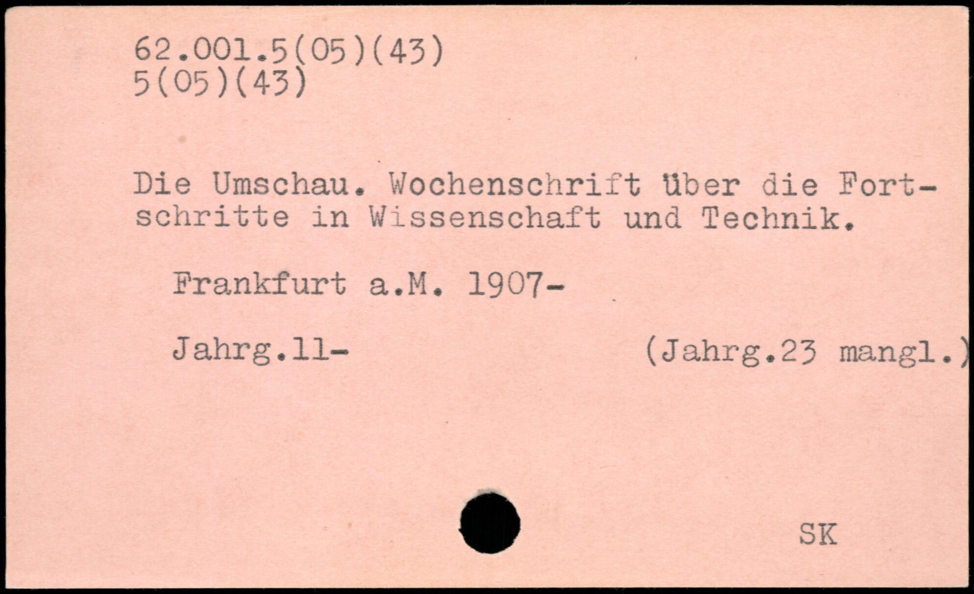 Die Umschau. Wochenschrift über die Fortschritte in Wissenschaft und Technik. Frankfurt a.M, 1907- Jahrg.ll- (Jahrg.23 mangl.)