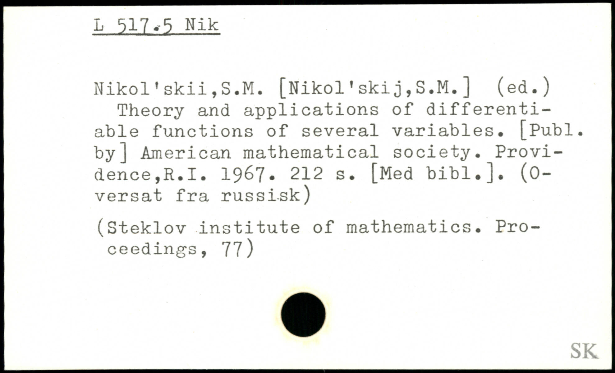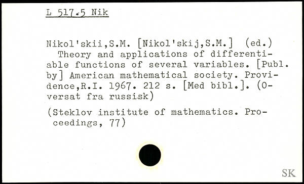 Nikol'skii,S.M. [Nikol'skij,S.M.] (ed.) Theory and applications of differentiable functions of several variables.