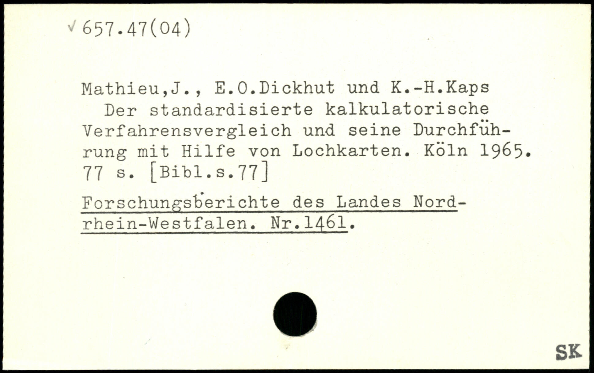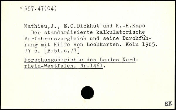 Mathieu,J., E.O.Dickhut und K.-H.Kaps Der standardisierte kalkulatorische Verfahrensvergleich und seine Durchführung mit Hilfe von Lochkarten.