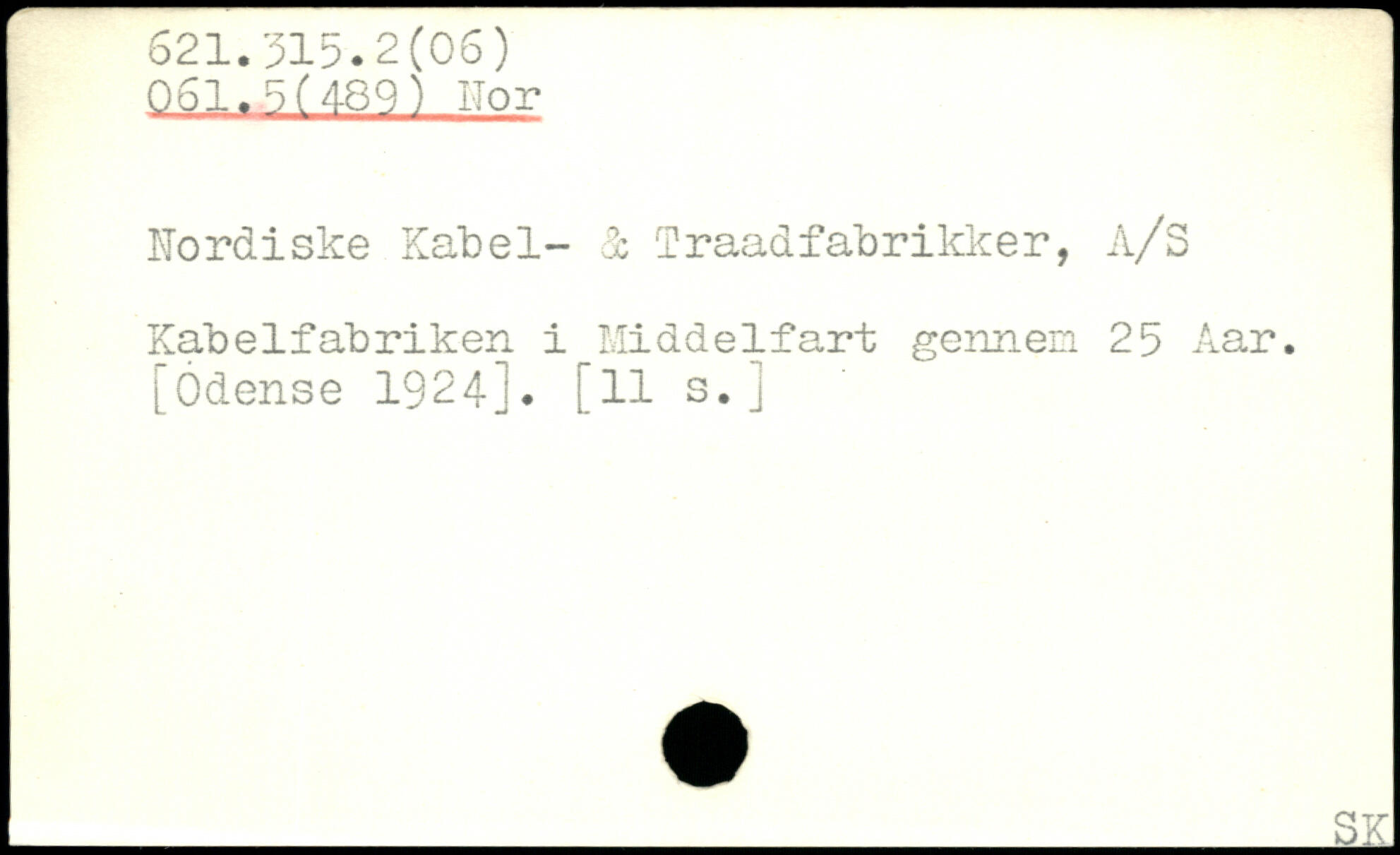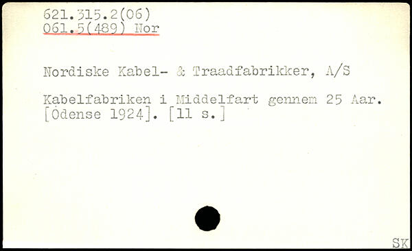 Nordiske Kabel- 1 Traadfabrikker, A/S Kabelfabrik en i Middelfart gennem 25 Aar. [Odense 1924]. [