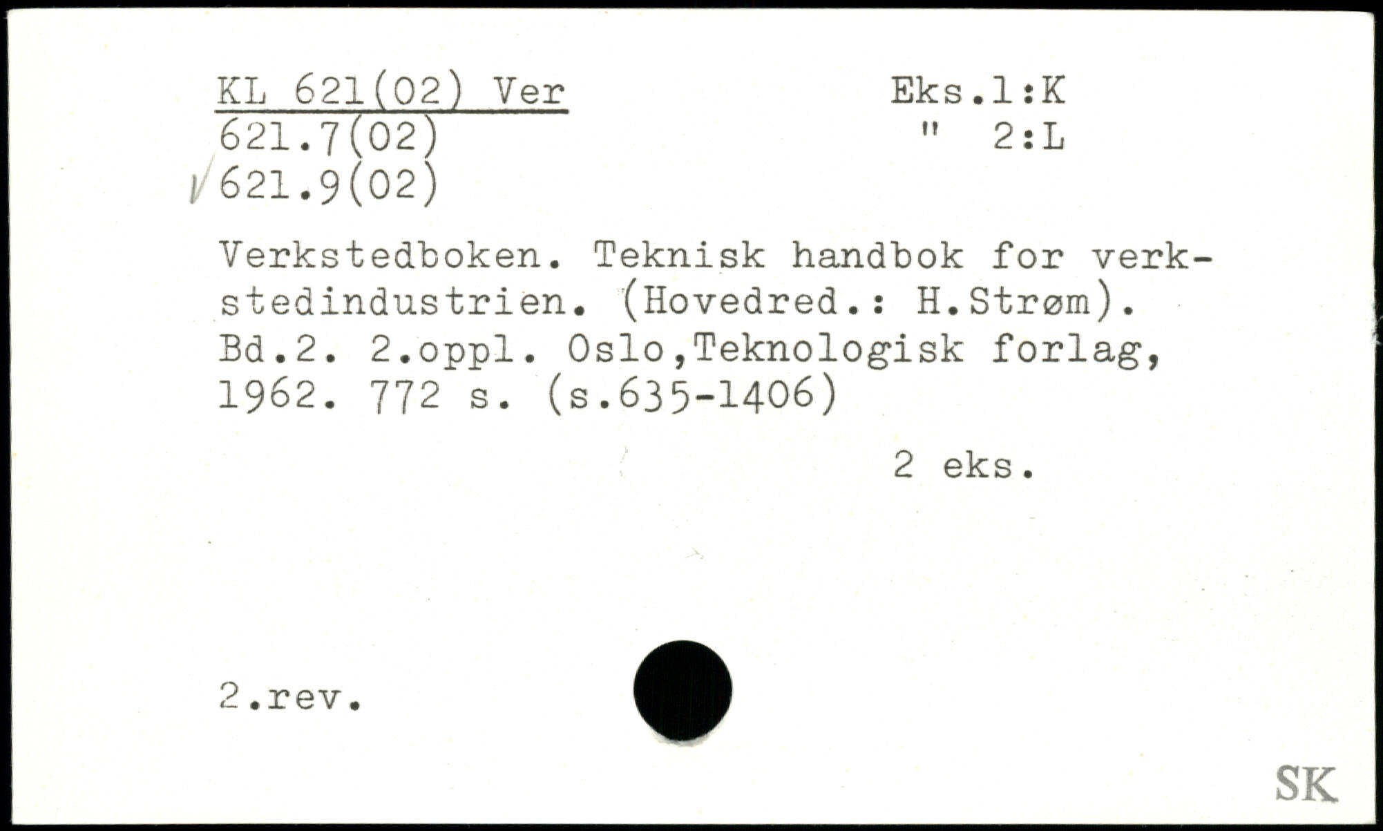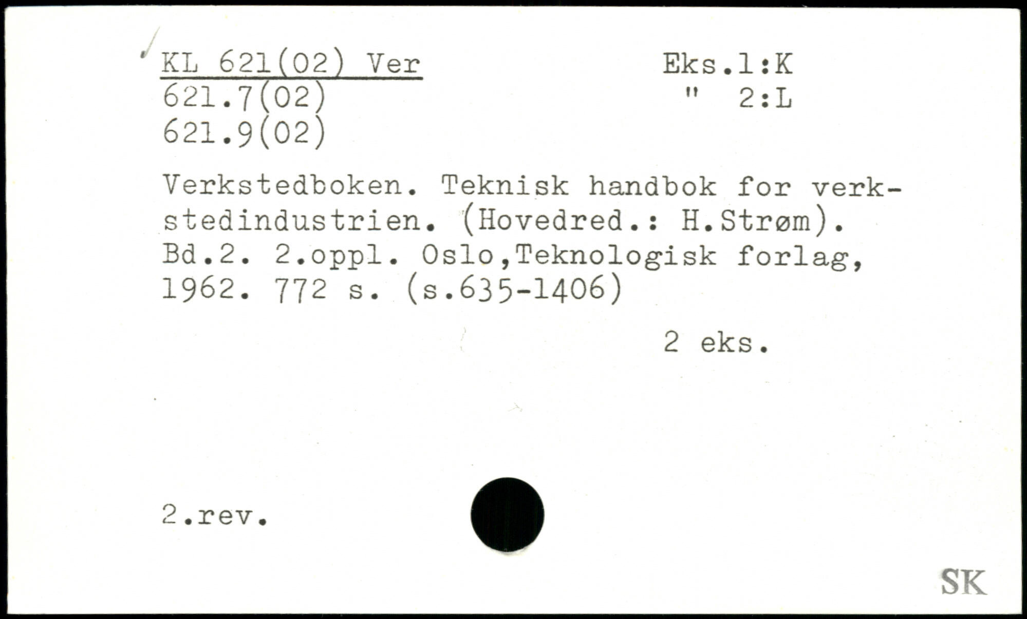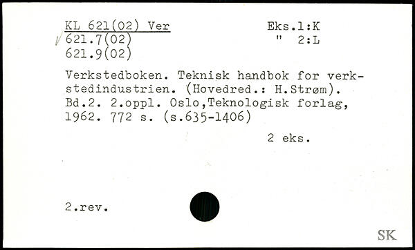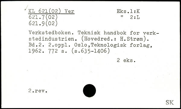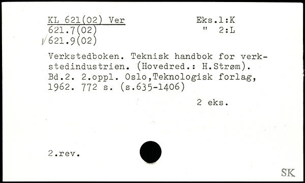 Verkstedboken. Teknisk handbok for verk-stedindustrien. (Hovedred.: H.Strøm).