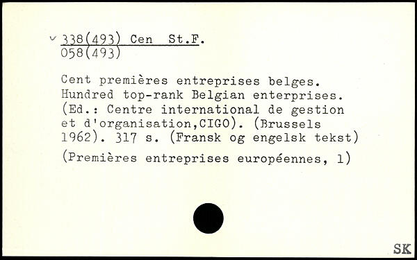 Cent premieres entreprises belges. Hundred top-rank Belgian enterprises. (Ed.î Centre international de gestion et d1 organisation,CIGO). (
