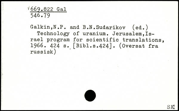 Technology of uranium. Jerusalem,Israel program for scientific translations, 1966.