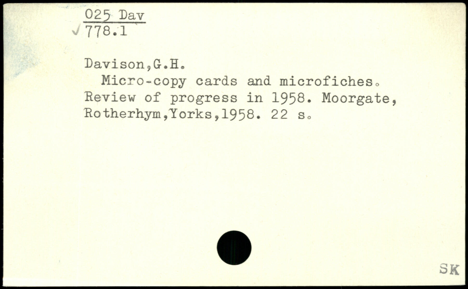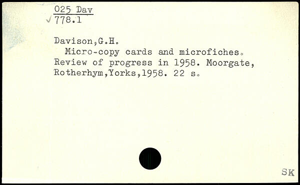 Davison.jG.IL Micro-copy cards and microfiches, Review of progress in 1958.