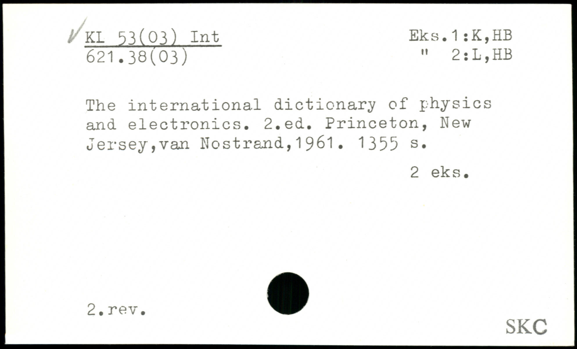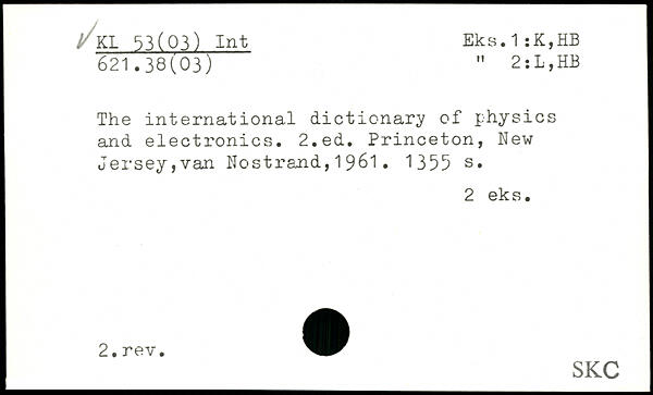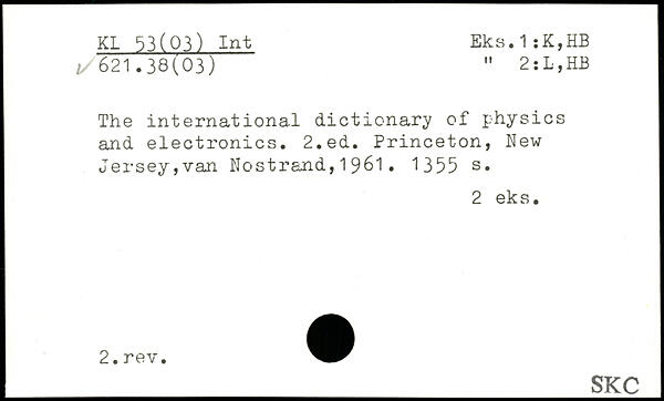 The international dictionary of physics and electronics. 2,ed. Princeton, New Jersey,van Nostrand,1961.