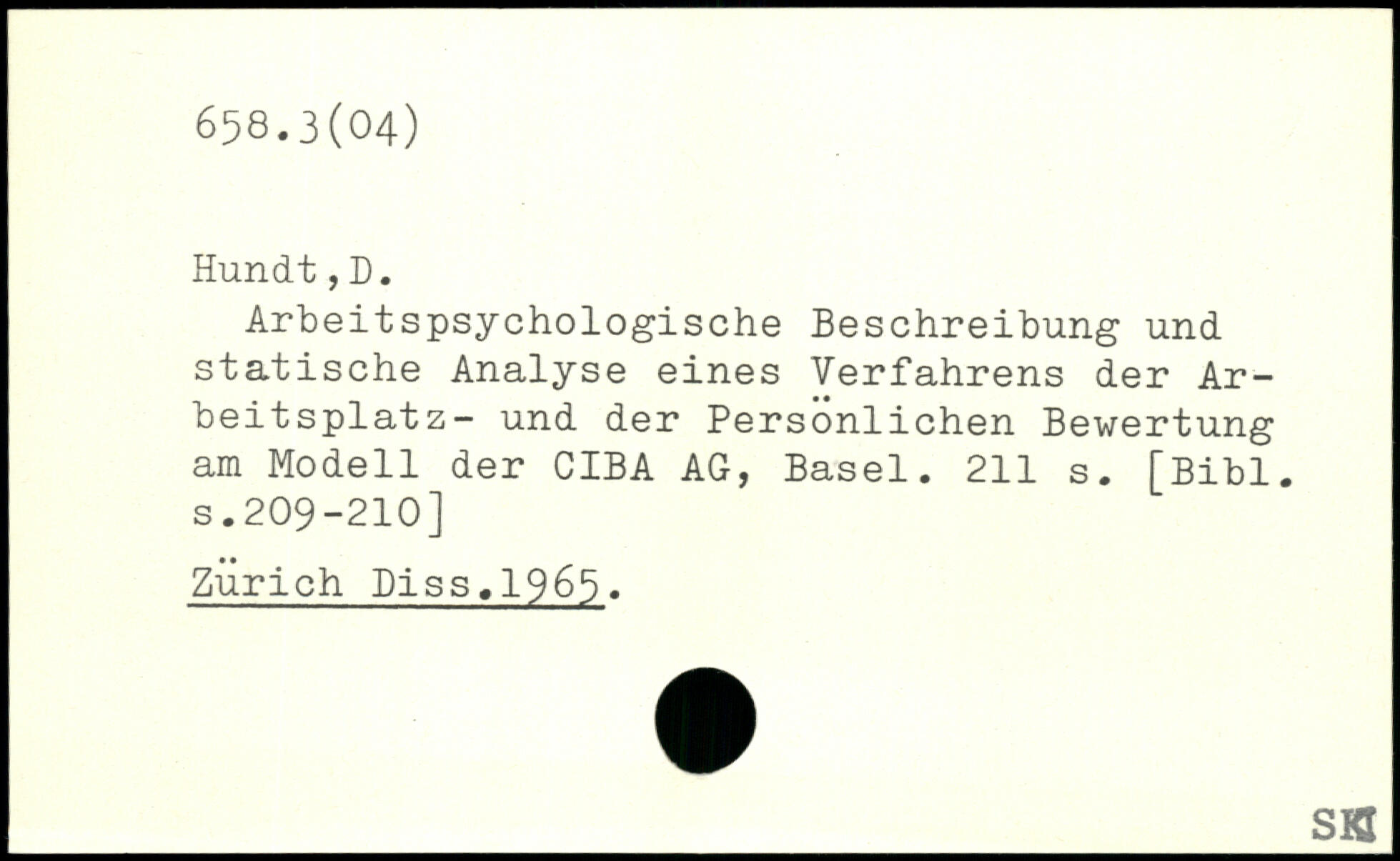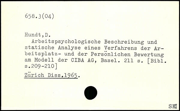 Arbeitspsychologische Beschreibung und statische Analyse eines Verfahrens der Arbeitsplatz- und der Persönlichen Bewertung am Modell der CIBA AG, Basel.