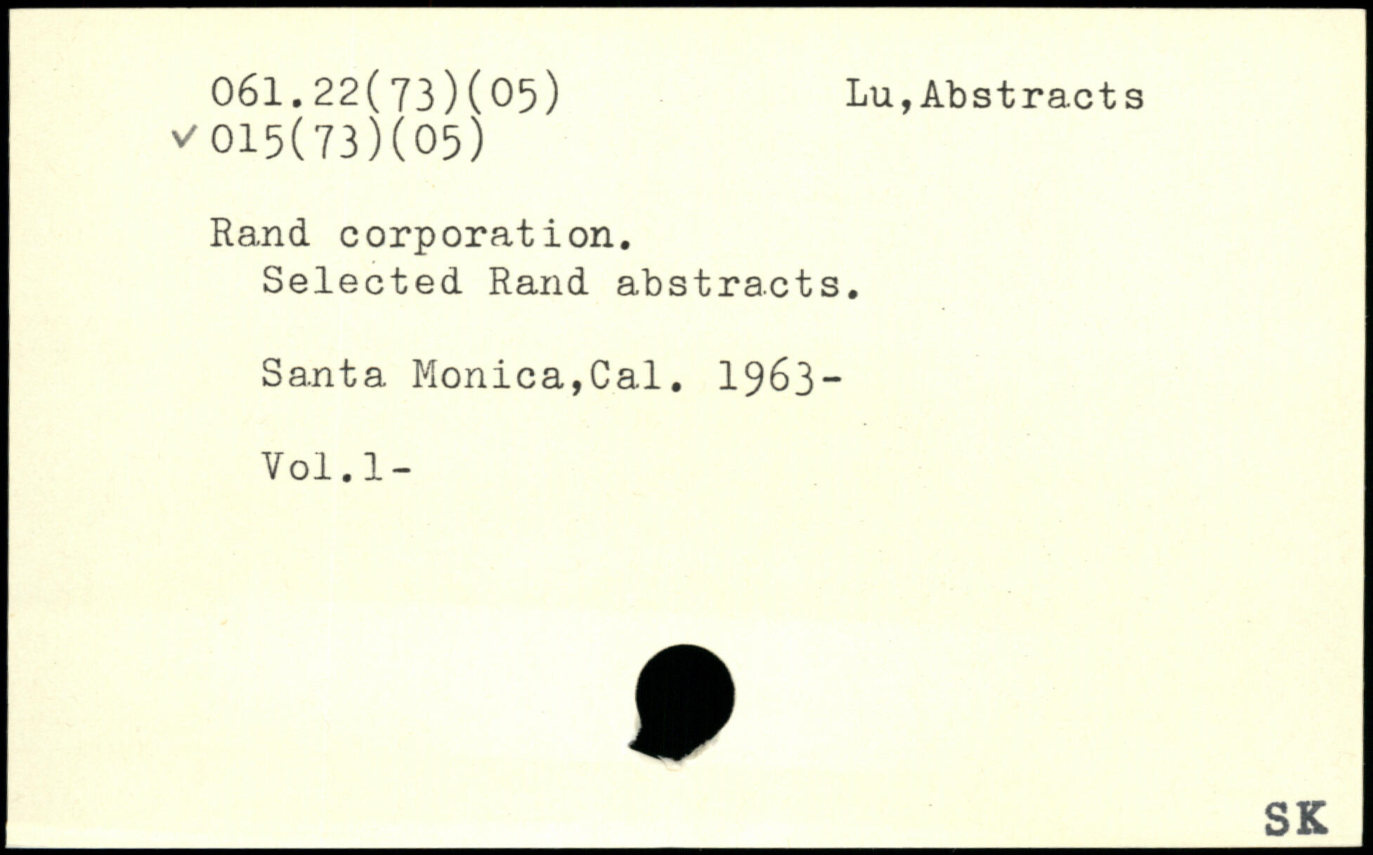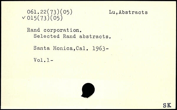 Rand corporation. Selected Rand abstracts. Santa Monica,Cal. 1963- Vol.l-