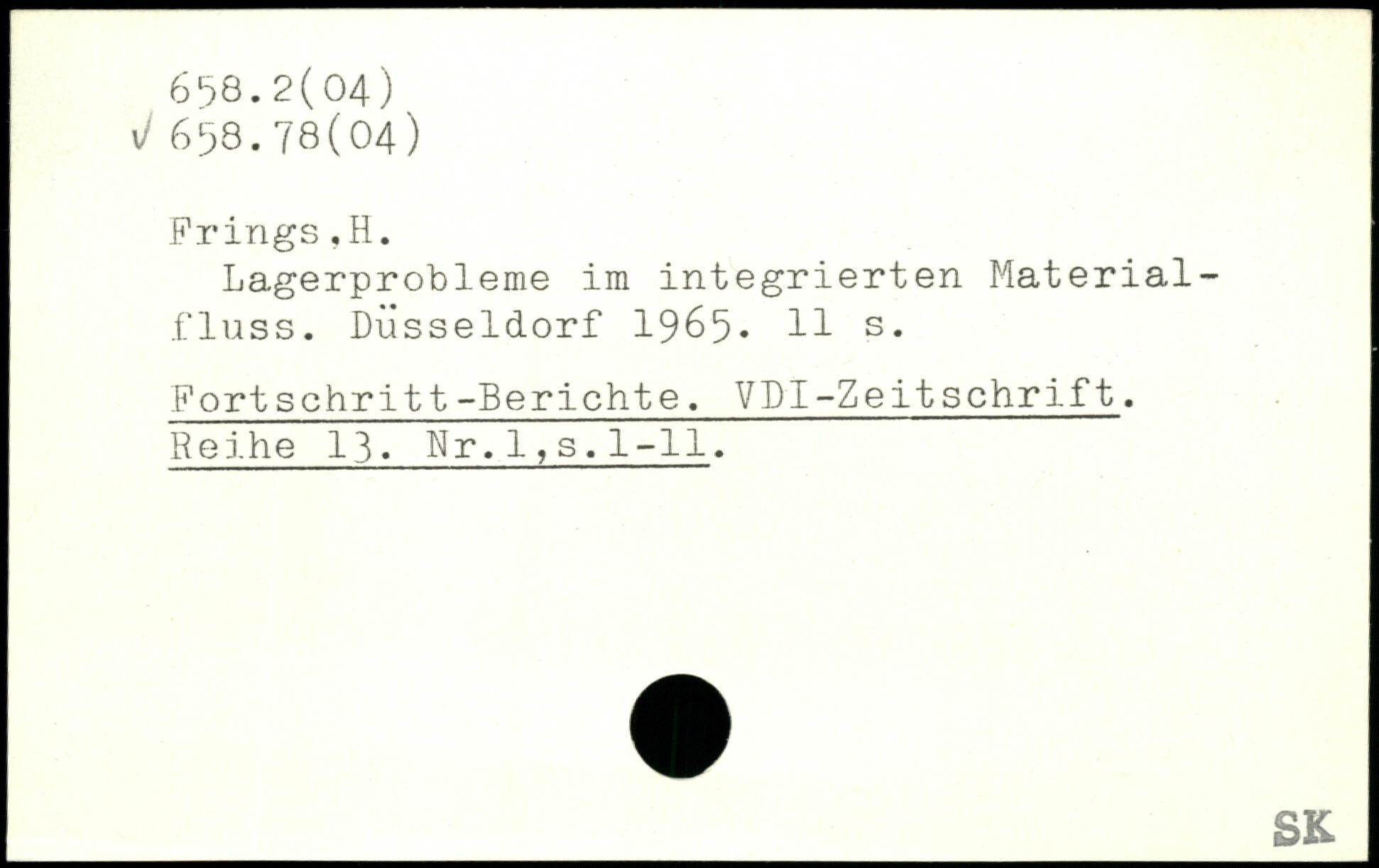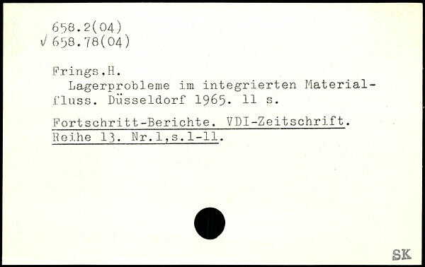 Lagerprobleme im integrierten Material-fluss. Düsseldorf 1965. H s. Fortschritt-Berichte. VDI-Zeitschrift. Reihe 13. Nr.l,s.l-ll.
