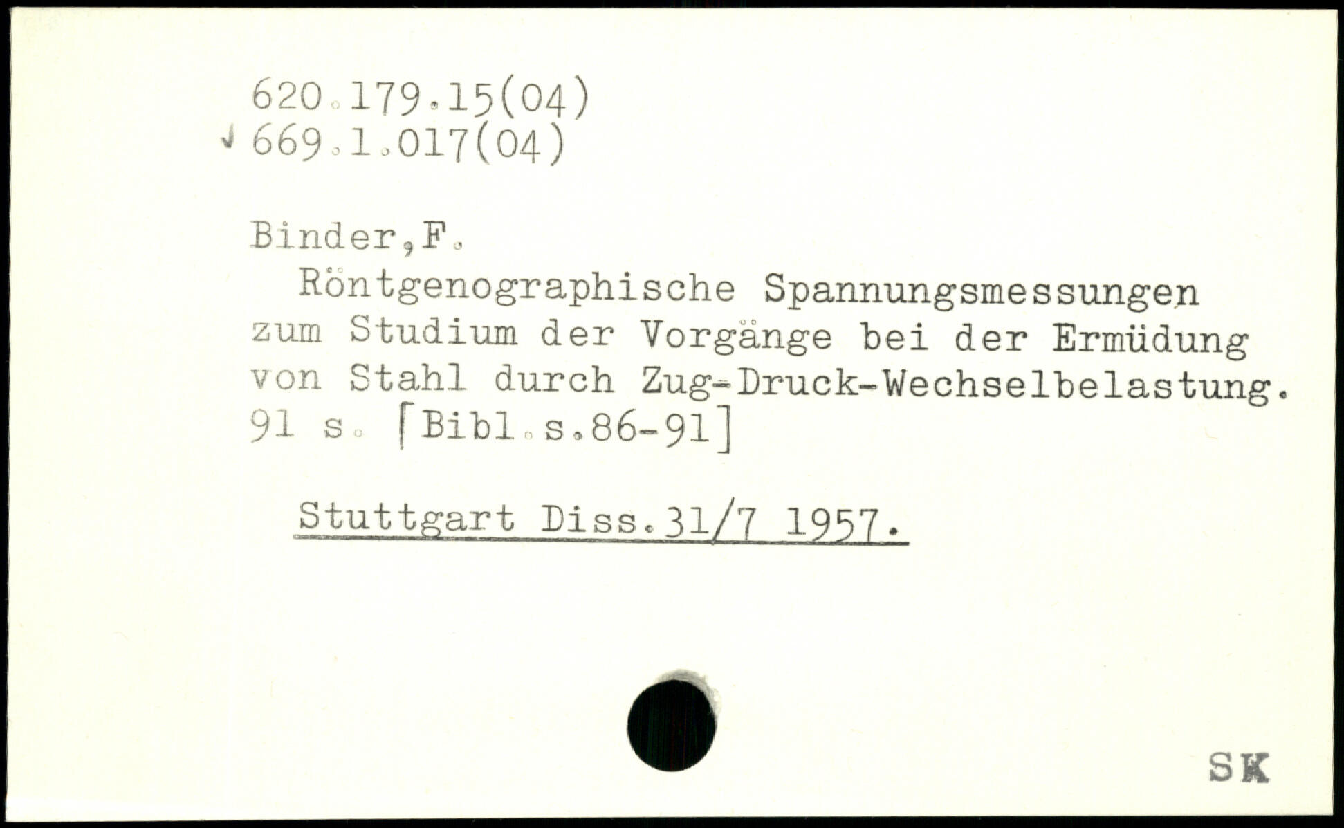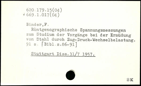 Röntgenographische Spannungsmessungen zum Studium der Vorgänge hei der Ermüdung von Stahl durch Zug^Druck-Wechselbelastung.