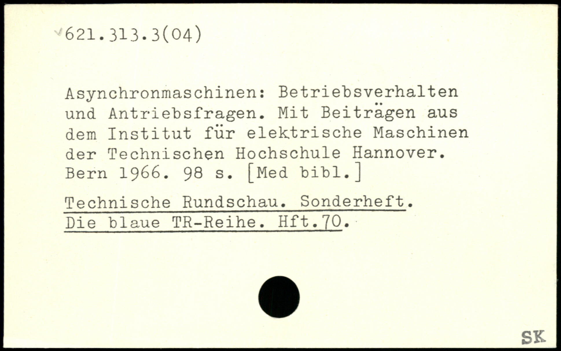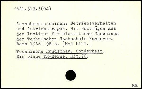 Asynchronmaschinen: Betriehsverhalten und Antriebsfragen. Mit Beitragen aus dem Institut für elektrische Maschinen der Technischen Hochschule Hannover.