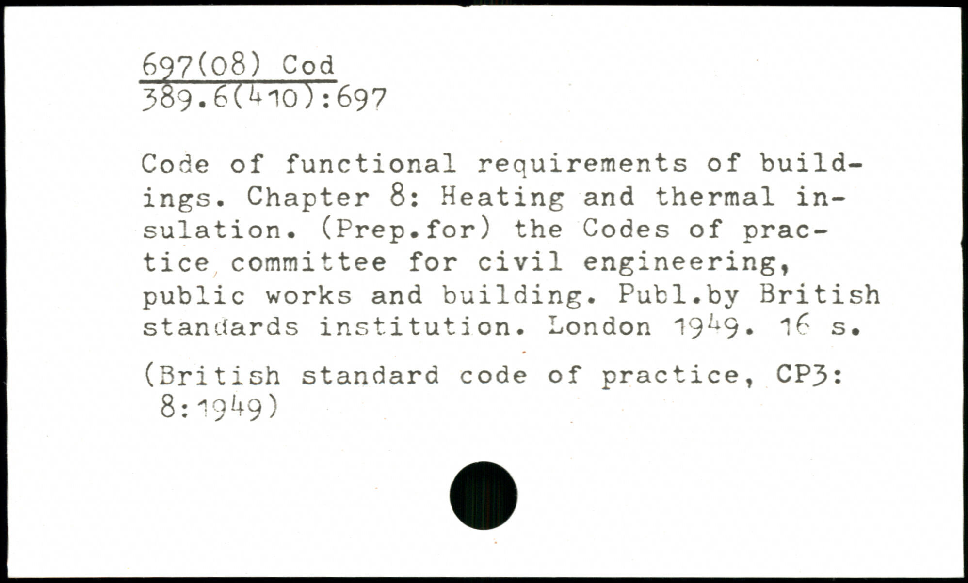 Code of functional requirements of buildings. Chapter 8: Heating and thermal insulation. (Prep.for) the Codes of practice committee for civil engineering, public works and building.