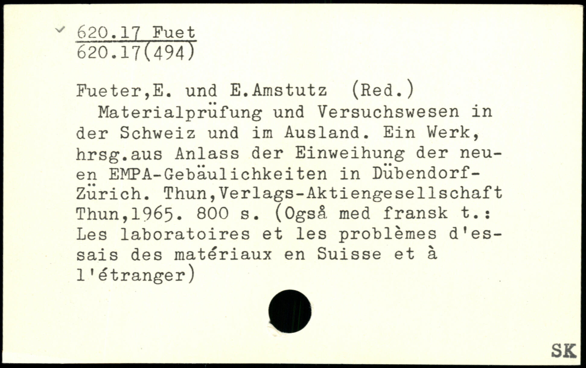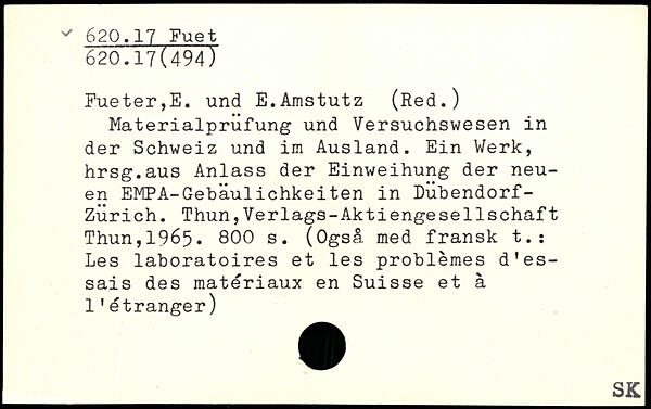 Materialprüfung und Versuchswesen in der Schweiz und im Ausland. Ein Werk, hrsg.aus Anlass der Einweihung der neuen EMPA-Gebäulichkeiten in Dübendorf-Zurich.