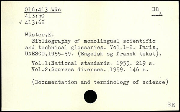Bibliography of monolingual scientific and technical glossaries. Vol o 1-20