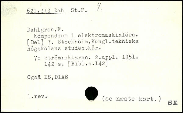 Kompendium i elektromaskinlara. [Del] 7. Stockholm,Kungl.tekniska högskolans studentkår. 7: Strömriktaren.