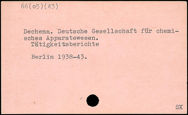 Dechema. Deutsche Gesellschaft für chemisches Apparatewesen, Tätigkeitsberichte