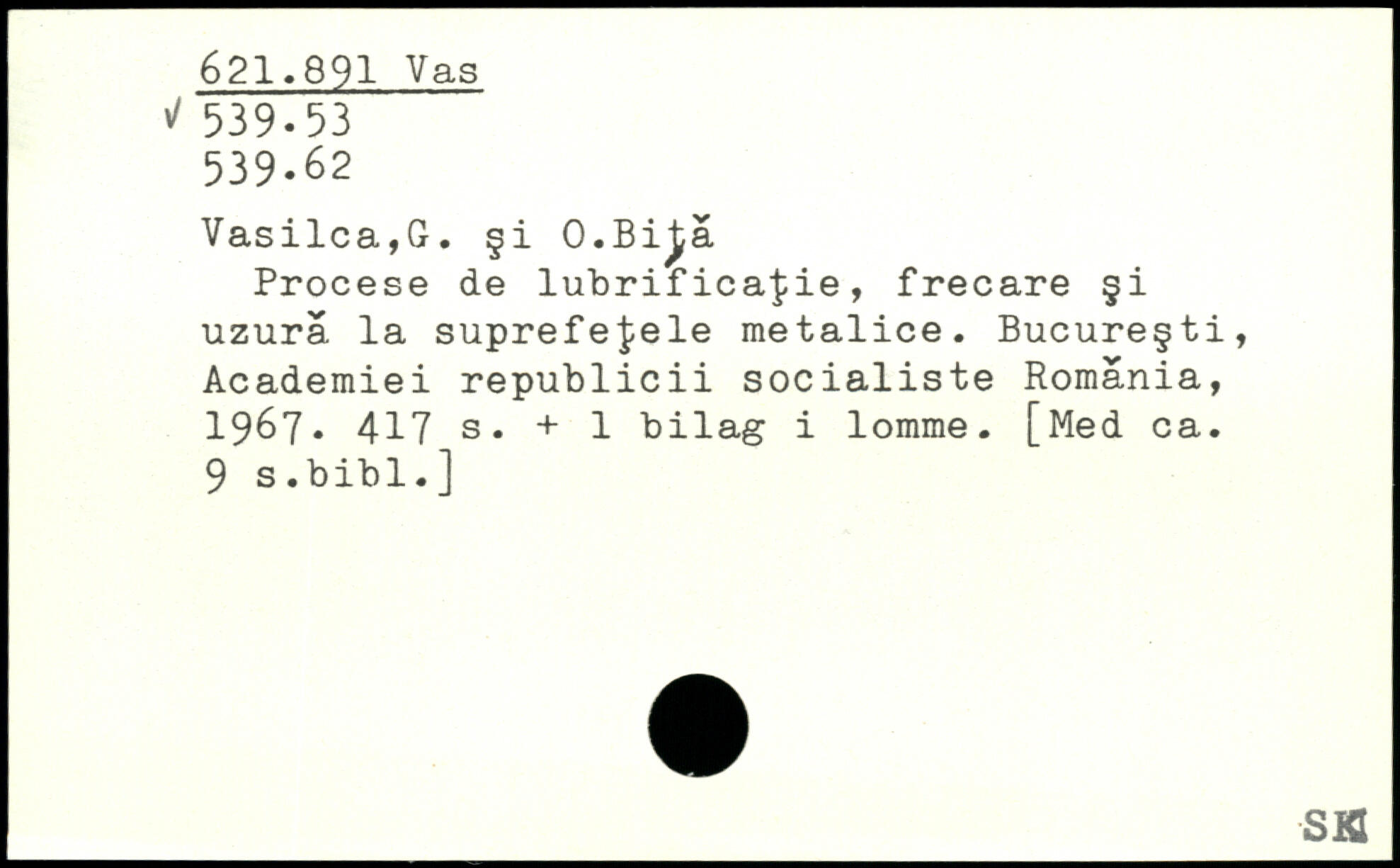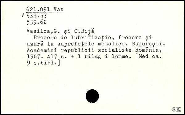 Vasilca,G. §i O.BiJa Procese de lubrifica$ie, frecare §i uzurâ la suprefe^ele metalice. Bucure§ti, Academiei republicii socialiste Romania, 1967.