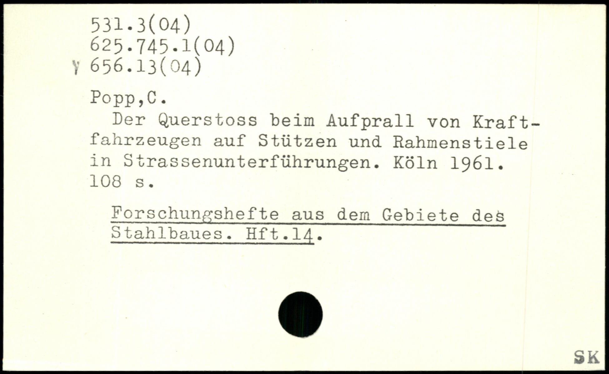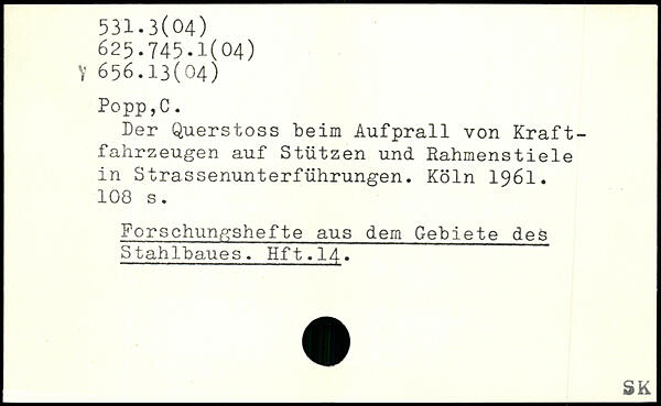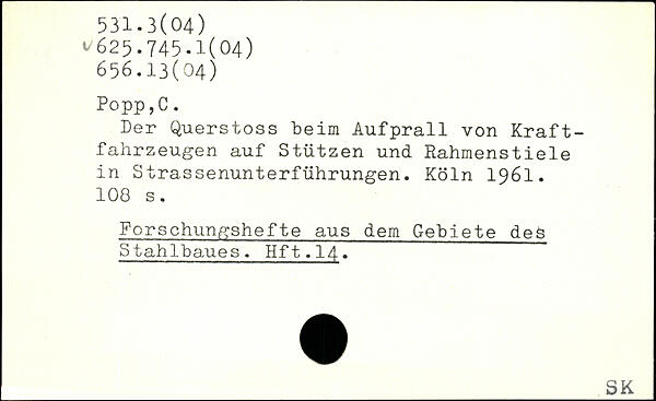 Der Querstoss beim Aufprall von Kraftfahrzeugen auf Stützen und Rahmenstiele in Strassenunterführungen.