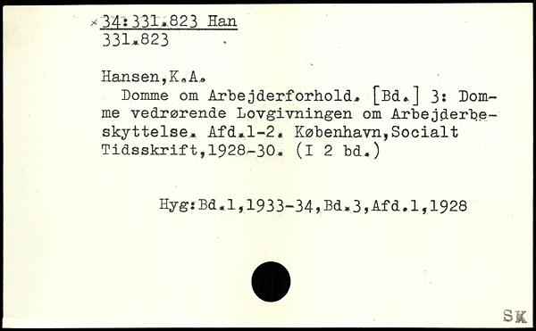Domme om Arbejderforhold. [Bd.] 3: Domme vedrørende Lovgivningen om Arbejderbeskyttelse. Afd.1-2.