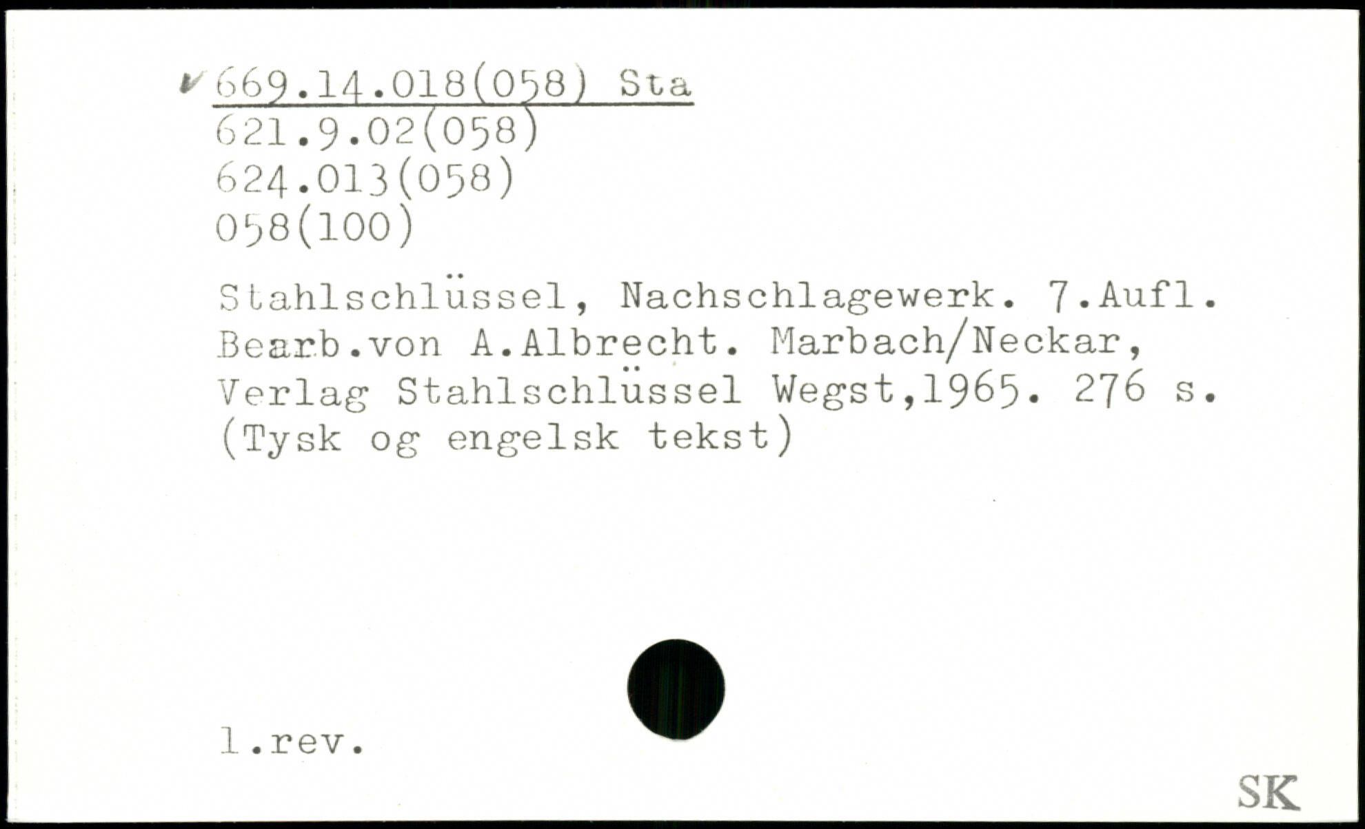 Stahlschlussei, Nachschlagewerk. 7-Aufl. Bearb.von A.Albrecht.