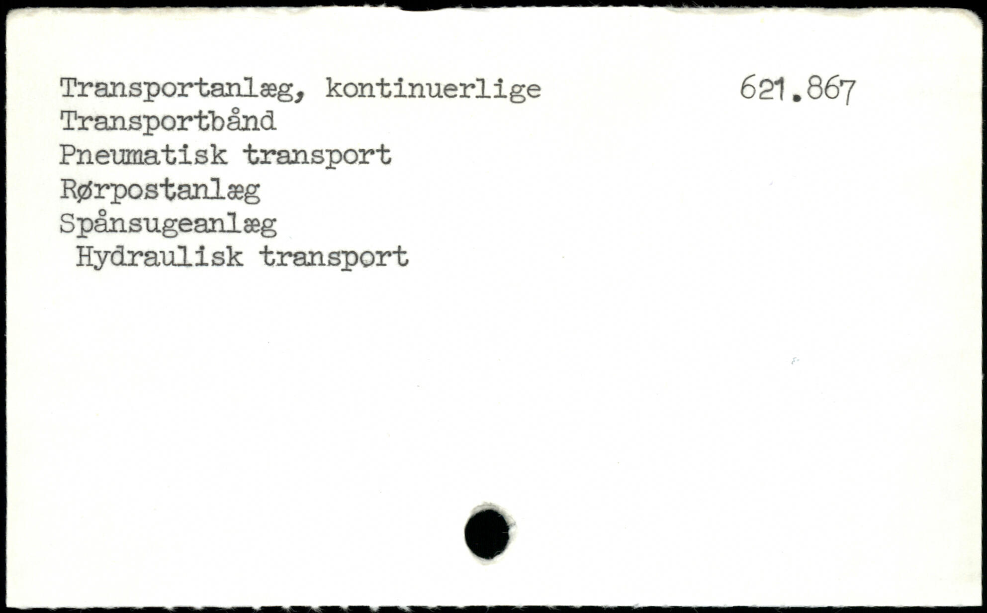 P ■ IM ,, Transportanlæg, kontinuerlige 621.867 Transpor tb ånd Pneumatisk transport Rørpostanlæg Spånsugeanlæg Hydraulisk transport