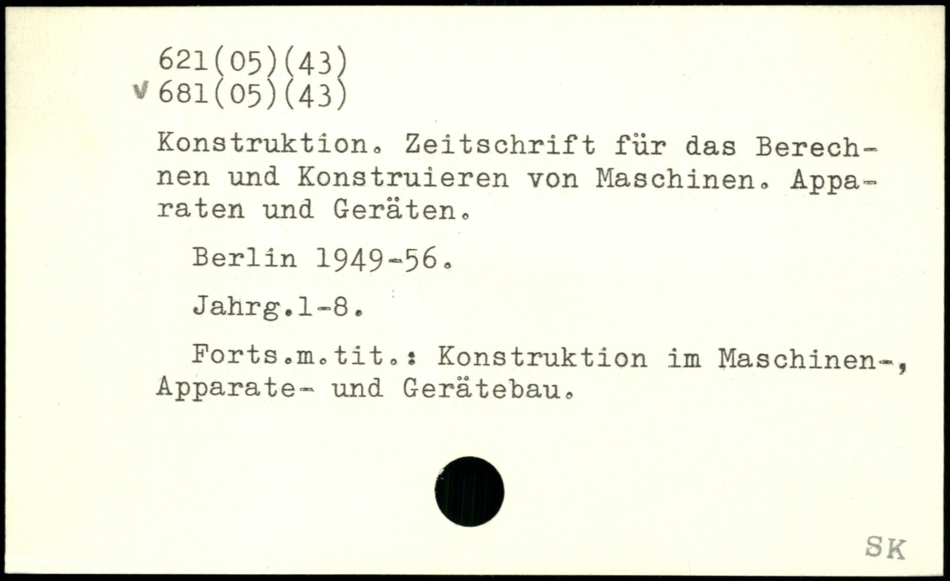 Konstruktion, Zeitschrift für das Berechnen und Konstruieren von Maschinen, Apparaten und Geräten