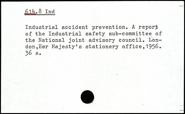 Industrial accident prevention. A report of the Industrial safety sub-committee of the National joint advisory council. London,Her Majesty's stationery office,1956.
