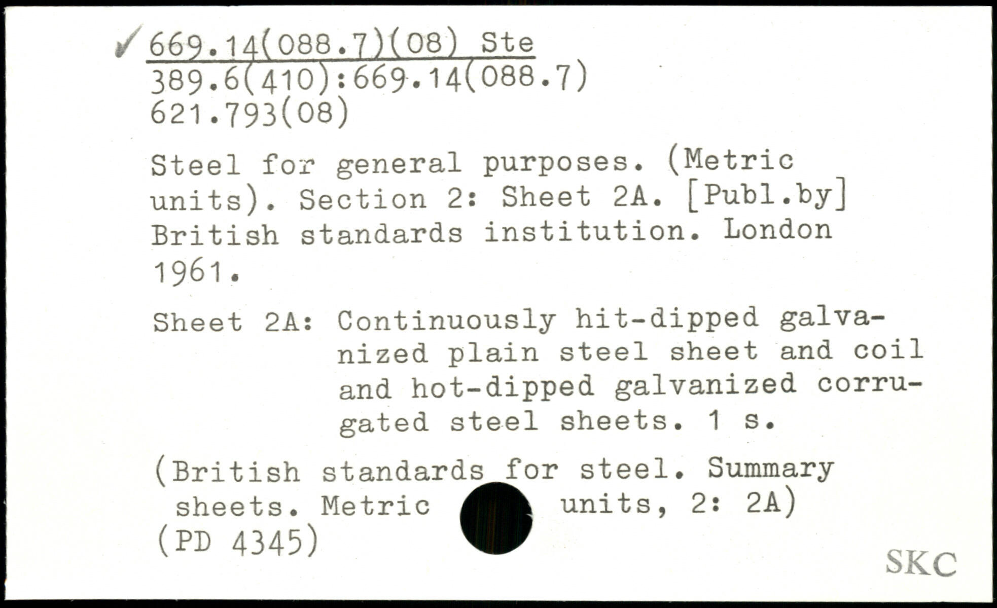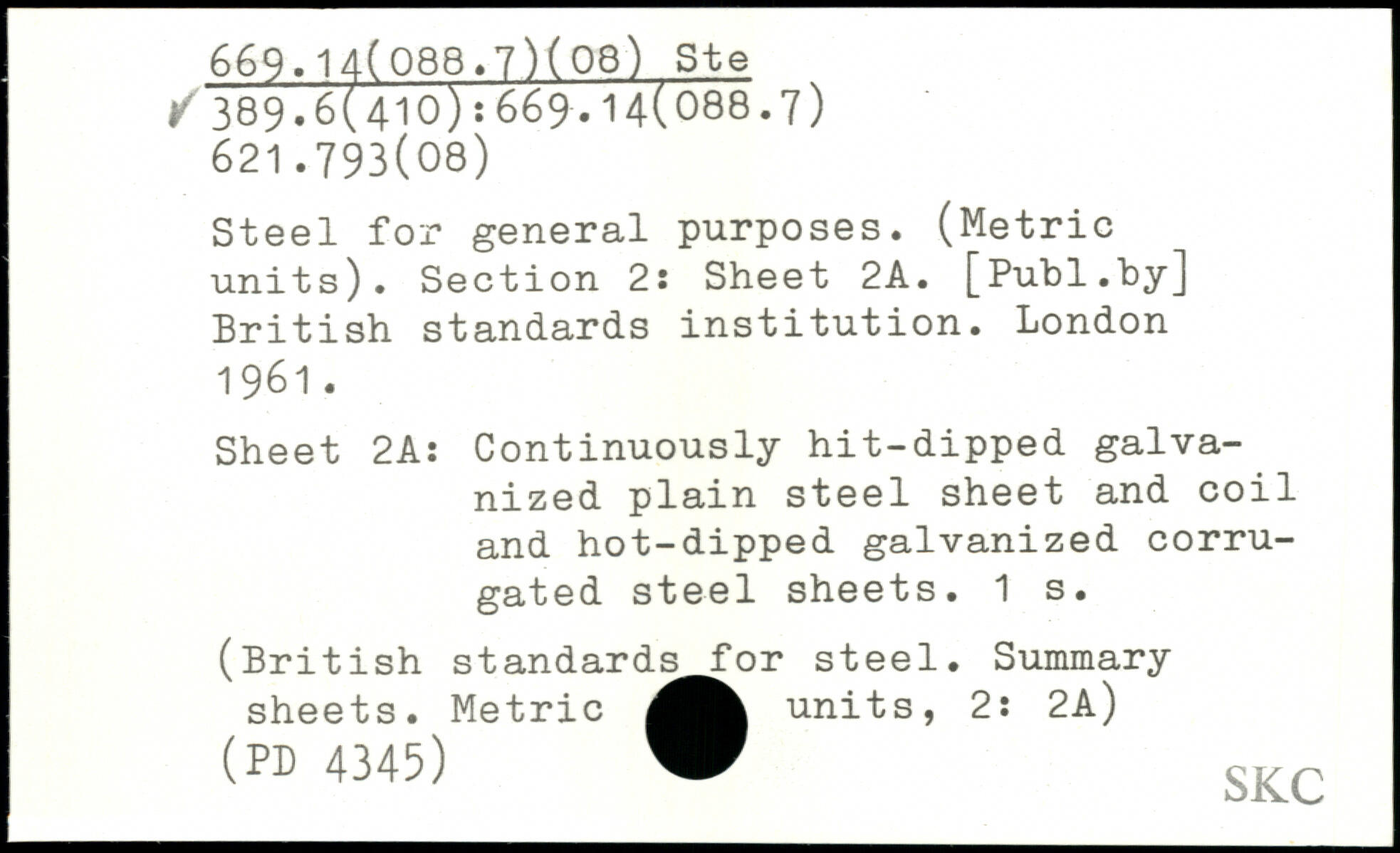 Steel for general purposes. (Metric units). Section 2: Sheet 2A.