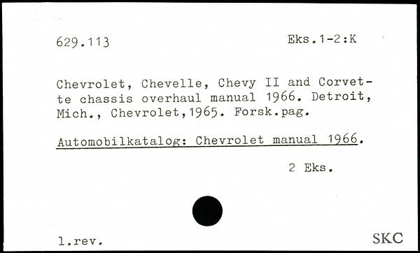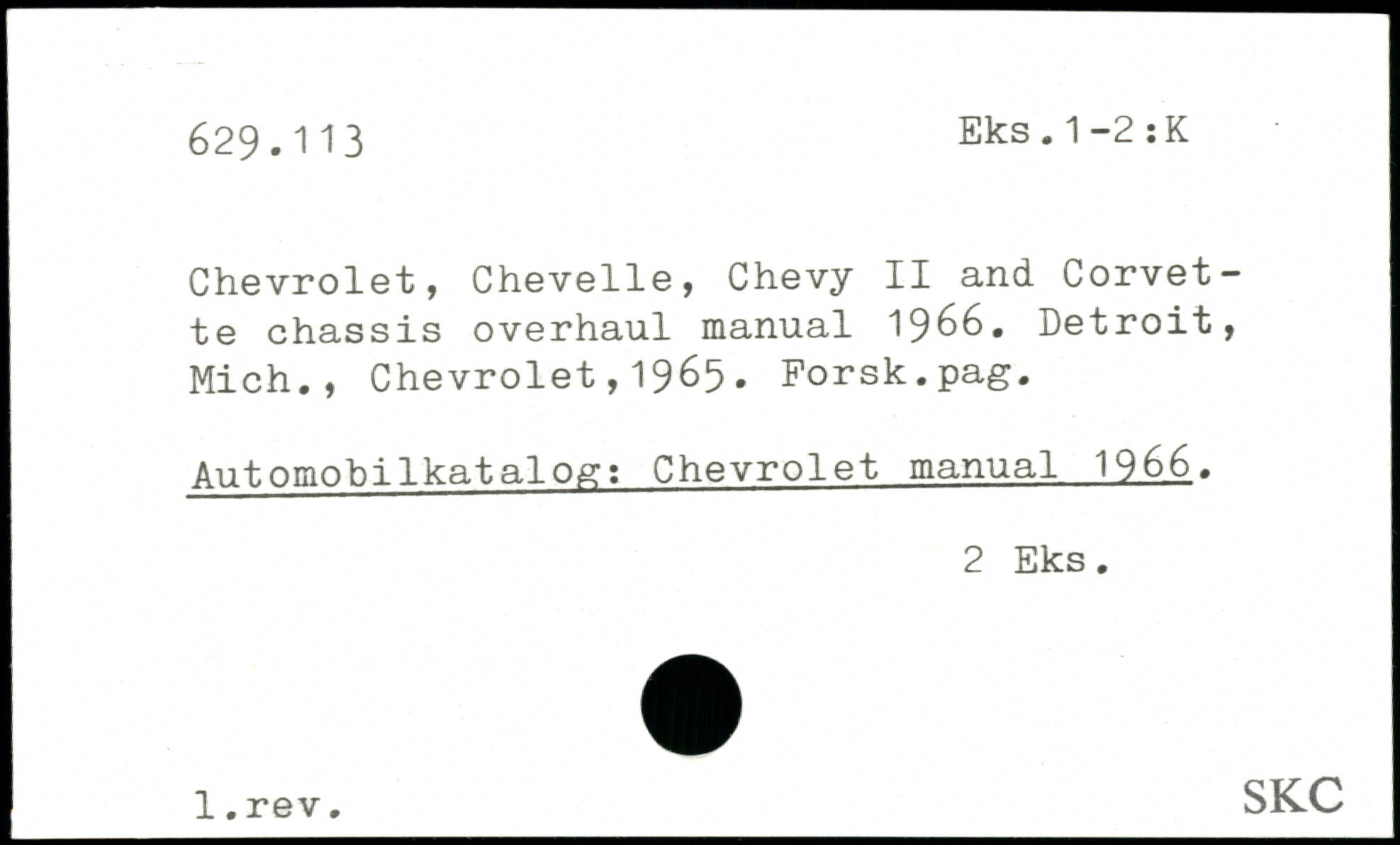 Chevrolet, Chevelle, Chevy II and Corvette chassis overhaul manual 1966.