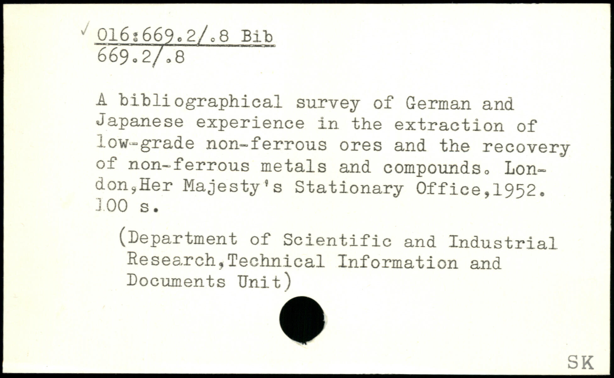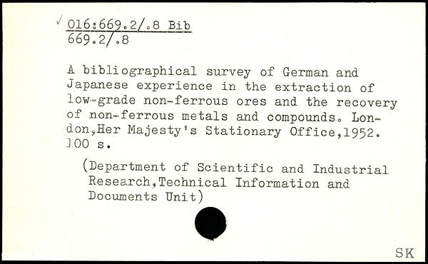 A bibliographical survey of German and Japanese experience in the extraction of low-grade non-ferrous ores and the recovery of non-ferrous metals and compounds , Londoner Majesty’s Stationary Office,1952.