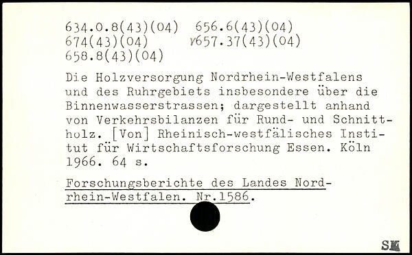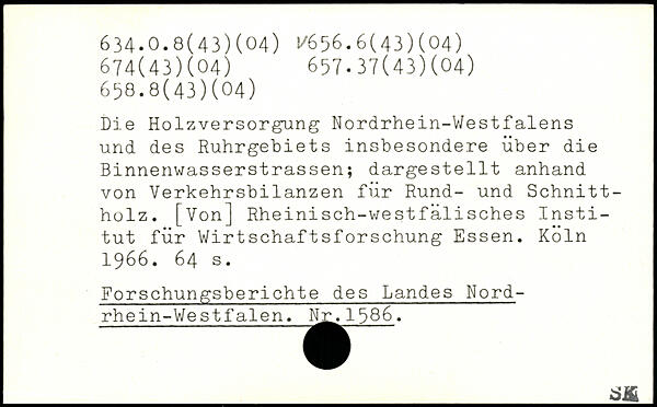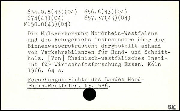 Die Holzversorgung Nordrhein-Westfalens und. des Ruhrgebiets insbesondere über die Binnenwasserstrassen; dargestellt anhand von Verkehrsbilanzen für Rund- und Schnittholz. [Von] Rheinisch-westfalisches Institut für Wirtschaftsforschung Essen.