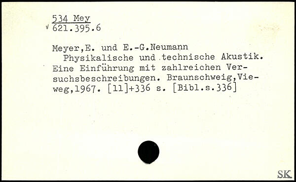 Physikalische und .technische Akustik. Eine Einführung mit zahlreichen Ver-suchsheSchreibungen.