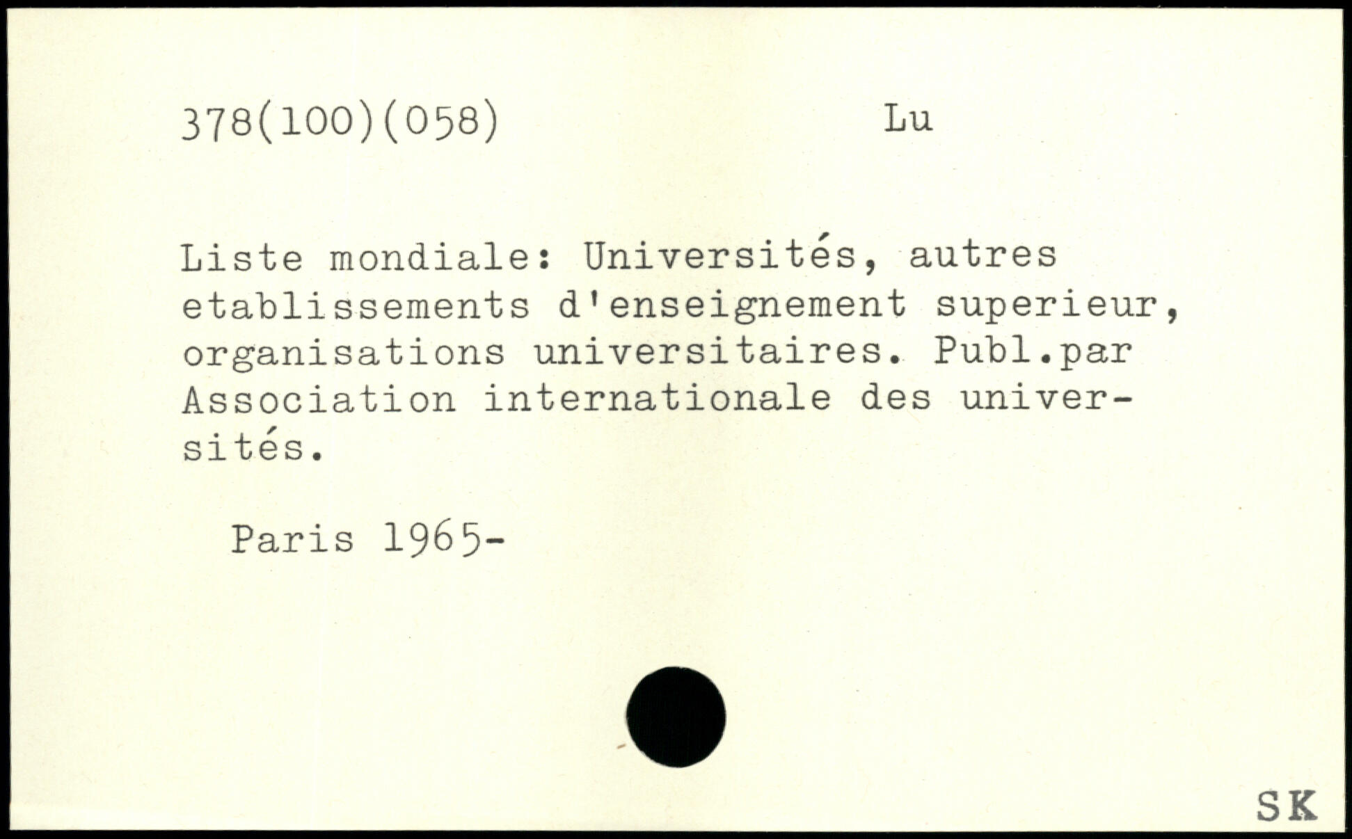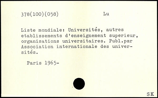 Liste mondiale: Universités, autres etablissements d’enseignement supérieur, organisations universitaires. Publ.par Association internationale des universités.