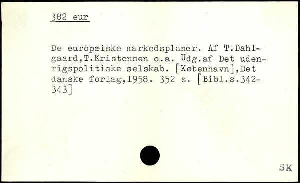 De europæiske markedsplaner. Af T.Dahl-gaard,T.Kristensen o.a. UcLg.af Det udenrigspolitiske selskab, fKøbenhavn],Det danske forlag,1958.