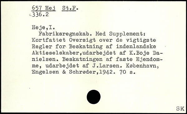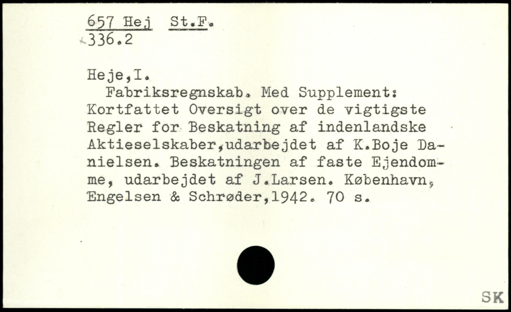 Fabriksregnskab. Med Supplements Kortfattet Oversigt over de vigtigste Regler for Beskatning af indenlandske Aktieselskaber,udarbejdet af K.Boje Da-nielsen. Beskatningen af faste Ejendomme, udarbejdet af J.Larsen.